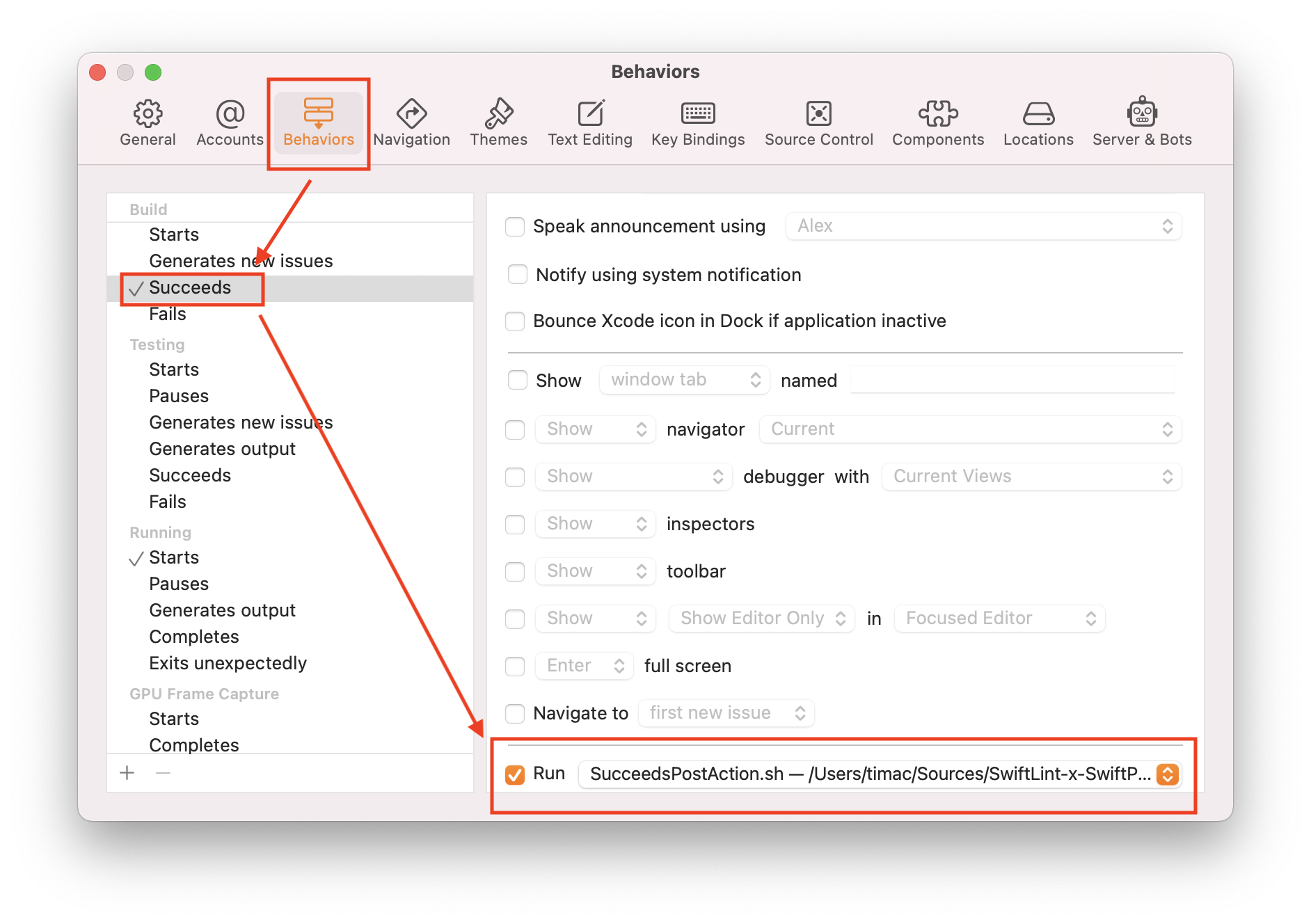 SucceedsPostAction.sh is a bash script to be used as a ‘Succeeds’ post action in Xcode. This convenient script will automatically trigger SwiftLint when you compile a Swift Package.