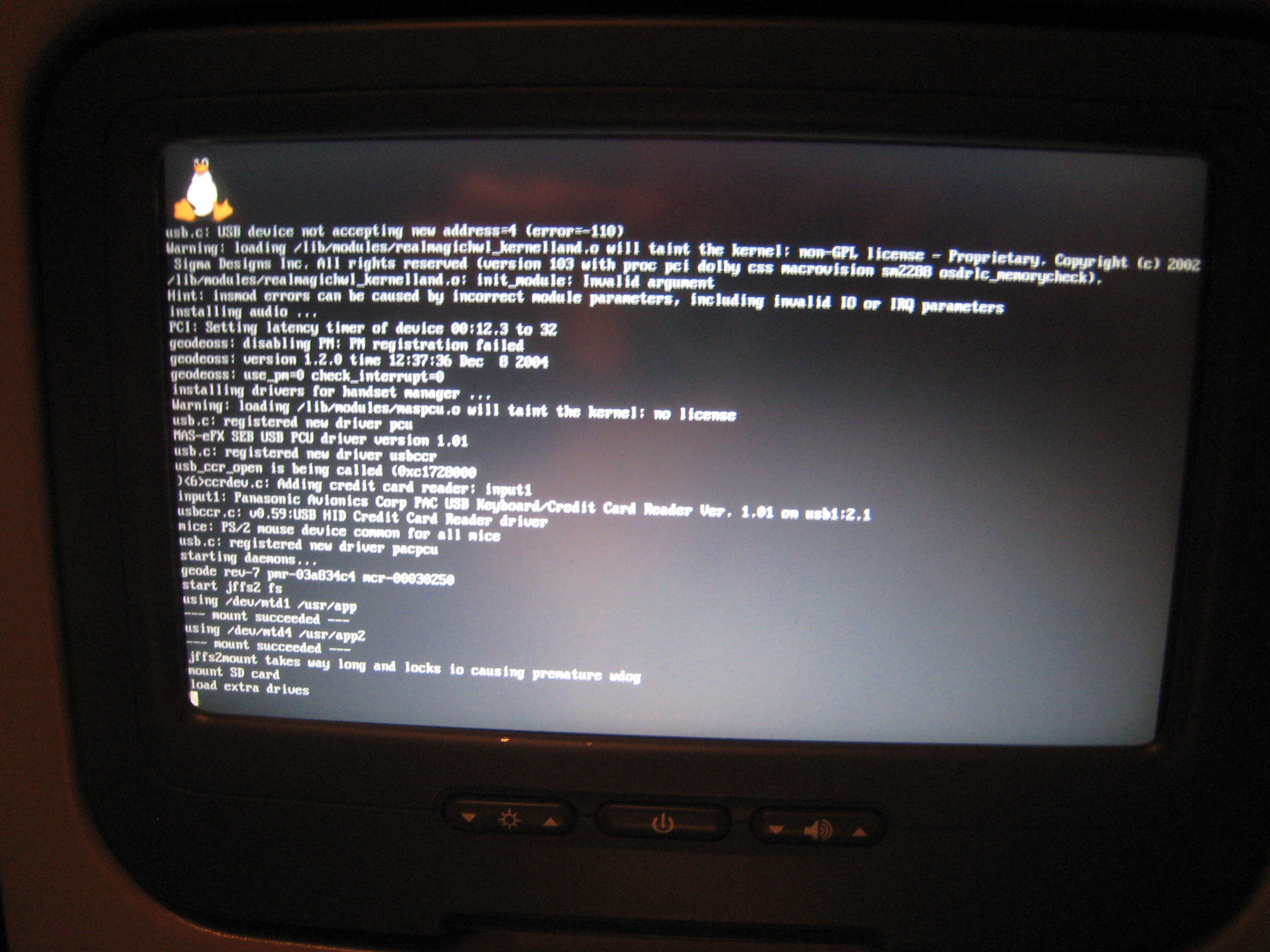 The hardware appears to be from Panasonic Avionics Corporation, probably a Panasonic X Series: